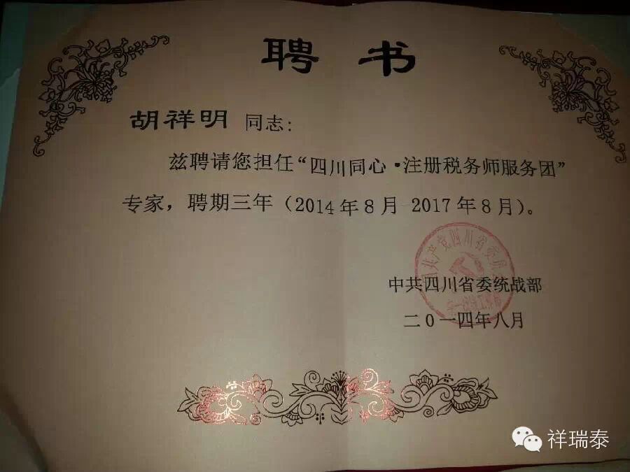会议期间同心团组织了对云南地震灾区的捐款活动,我所所长胡祥明代表祥瑞泰税务为云南地震灾区的同胞们献出了爱心。同时胡祥明所长被聘为“四川同心·注册税务师服务团”专家,并担任“四川同心·注册税务师服务团”成都市分团副团长兼金牛区分团团长。